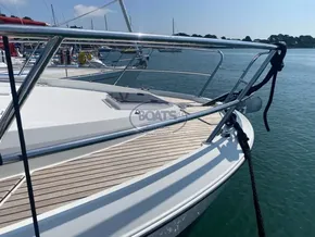 Confort à bord:• Vitre latérale bâbord coulissante • Désembueur carré/poste • Réchaud gaz 2 feux • Micro-ondes • Réfrigérateur 80 L + congélateur 75 L (pont inférieur) • Prise d’eau douce de quai en continu • Chauffe-eau 25 L (220 V) • Chauffage air pulsé (4-5 sorties) • Circuit 220 V + chargeur • Panneau solaire sur fly • Éclairages LED (cockpit, fly, timonerie, cabines) • WC marin + réservoir eaux noires 80 L