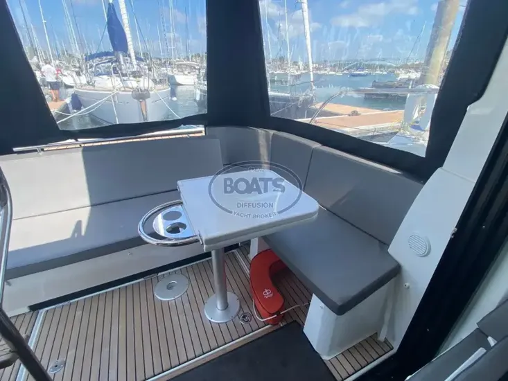 • Teck cockpit, plateformes de bain et roof • Teck passavants bâbord/tribord • Fermeture de cockpit arrière (Graphite) • Bimini de fly (Graphite) • Plateformes de bain rapportées • Table de cockpit amovible
